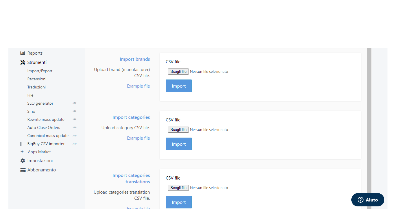 attraverso l'upload dei file CSV BigBuy in formato standard.