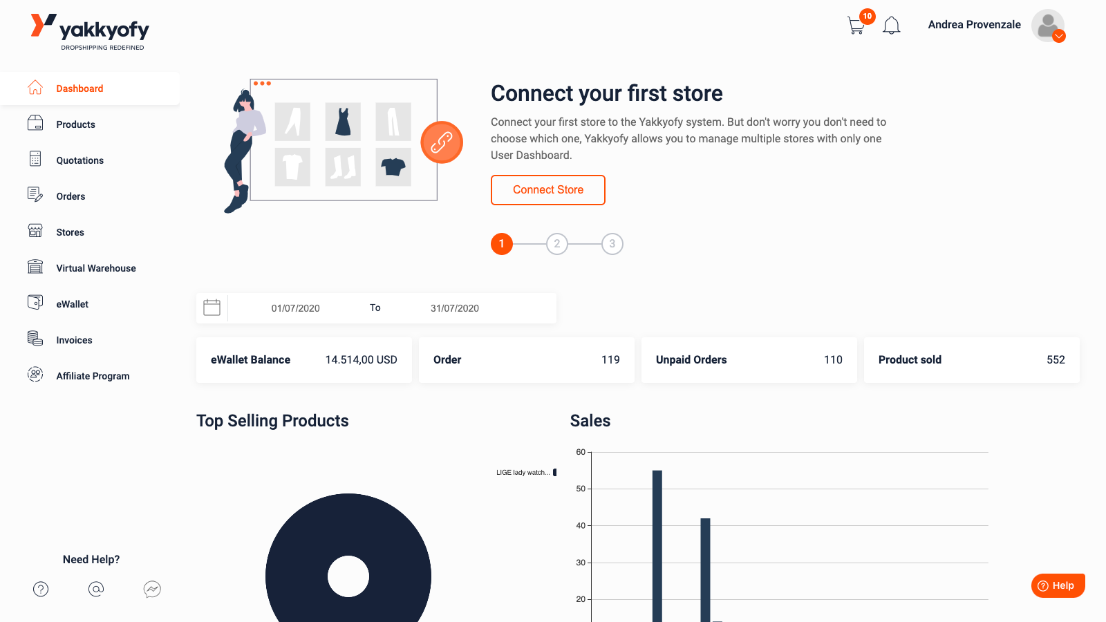 Yakkyofy ti fornisce i prodotti da vendere, volendo anche brandizzati con il tuo logo, ti aiuta a importarli nel tuo negozio con pochi clic e si occupa automatizzare completamente tutto il processo di evasione degli ordini. In questo modo, puoi risparmiare tempo per fare ciò che è più importante per la tua attività: promuovere il tuo negozio. You run ads, we power your store.