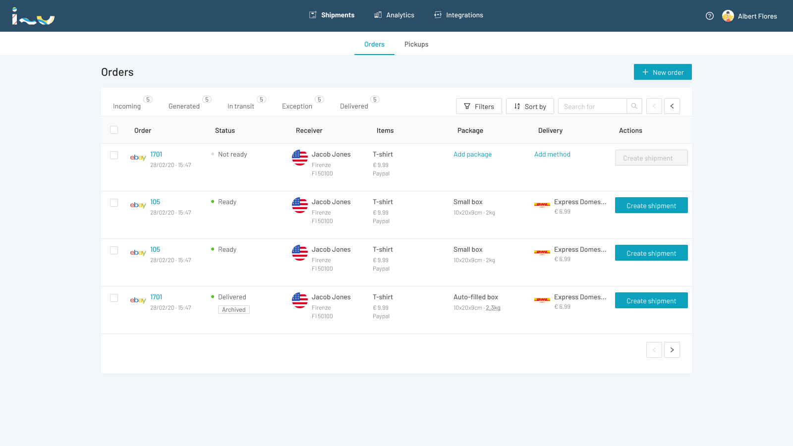 isendu consente di automatizzare tutte le fasi di spedizione, dalla ricezione dell'ordine alla spedizione del pacco. Inoltre è possibile gestire gli ordini da un'unica interfaccia, generare automaticamente etichette di spedizione, aggiornare il tracciamento sui canali di vendita e confrontare facilmente le tariffe di spedizione.