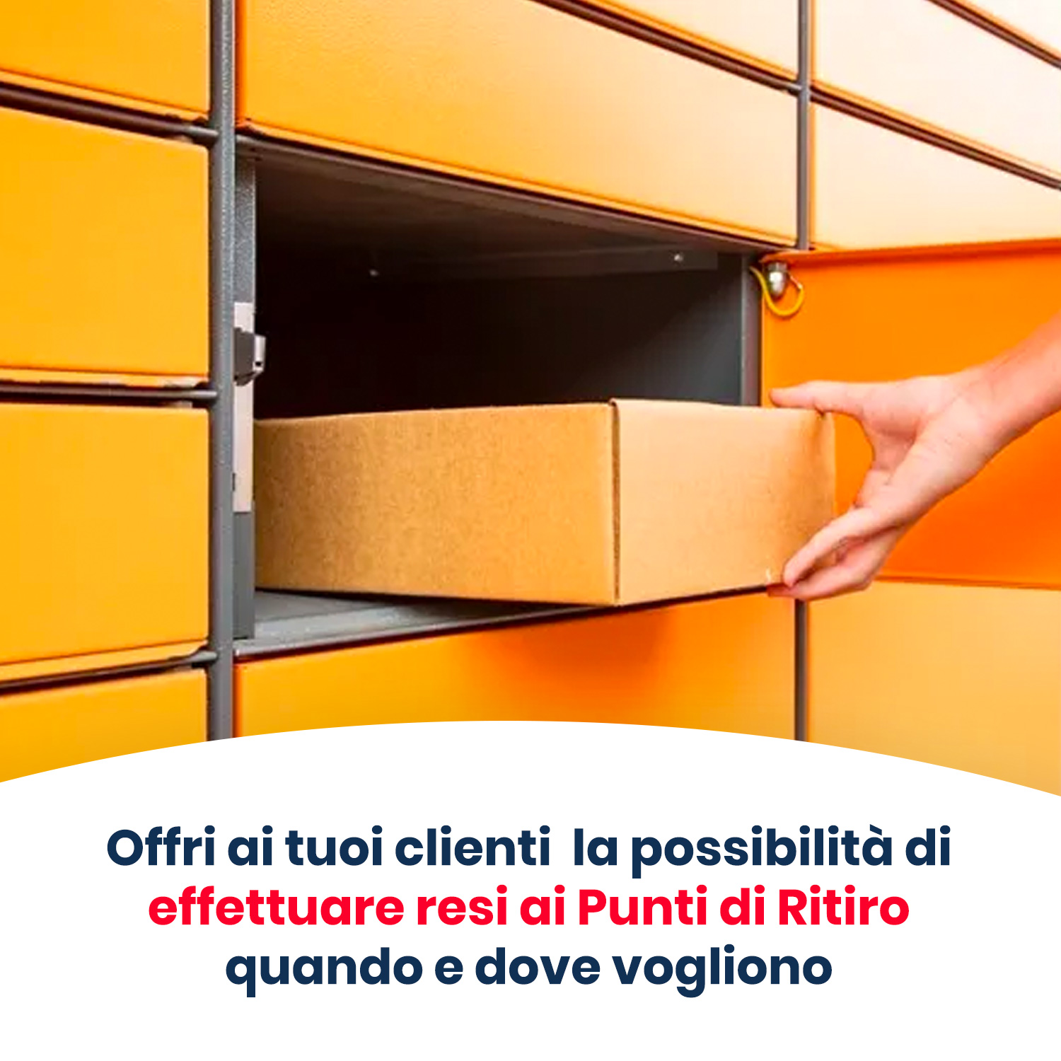 Fatto, a tutto il resto ci pensa la tecnologia GEL Proximity! L’etichetta di reso sarà inviata via email al cliente, il quale dovrà semplicemente applicarla sul pacco e recarsi al punto di ritiro selezionato.
