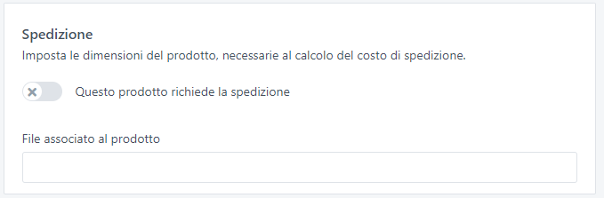 Per associare un file ad un prodotto, è sufficiente caricarlo in “Strumenti” -> “File” e poi selezionarlo all’interno della relativa scheda prodotto.